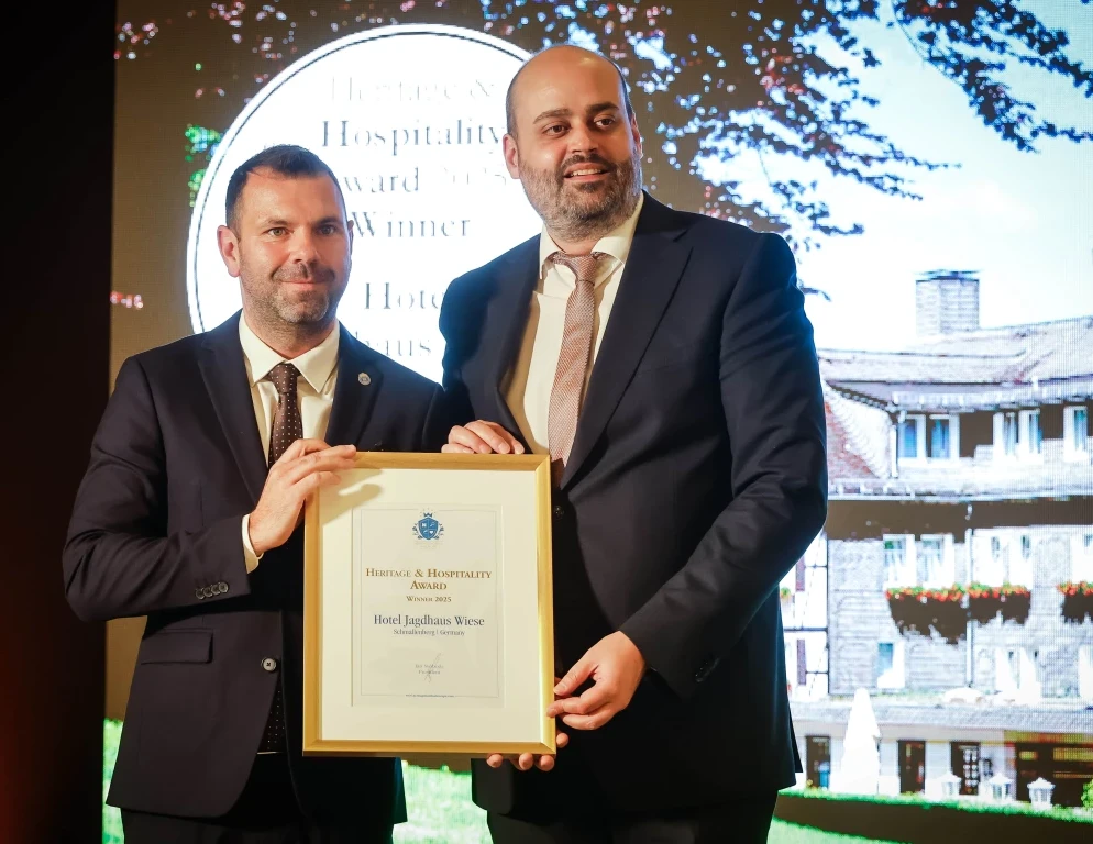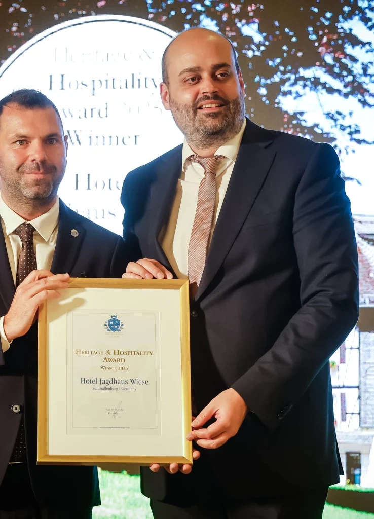 Schmallenberg, 14. November 2025. Das Hotel Jagdhaus Wiese in Schmallenberg wurde zum zweiten Mal in Folge mit dem begehrten Award in der Kategorie „Heritage & Hospitality“ der Heritage Hotels of Europe ausgezeichnet. Die Verleihung fand am 14. November 2025 im Rahmen einer feierlichen Gala im Kristály Imperial Hotel nahe Budapest statt und würdigte einmal mehr die herausragende Gastfreundschaft und das gelebte historische Erbe des traditionsreichen Hauses im Schmallenberger Sauerland.